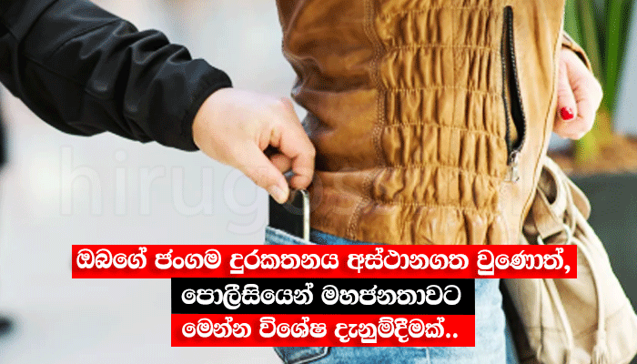 ජංගම දුරකථන අස්ථානගතවීමකදී හෝ සොරකම් කිරීමකදී ගතයුතු ක්රියාමාර්ග සම්බන්ධව පොලීසිය විසින් මහජනතාව වෙත දැනුම්දීමක් සිදුකර තිබෙනවා.